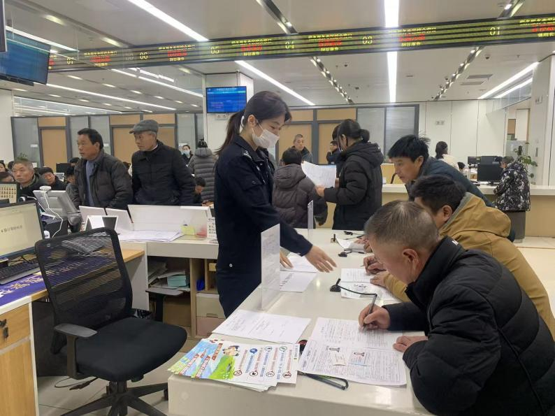 连云区政务服务大厅人社、医保、不动产等综合窗口早上迎来办事高峰。中心全体工作人员用高效便捷服务护航新年“开门红”。工作人员耐心协助群众使用机器取号,指导群众查询资料、办理业务。