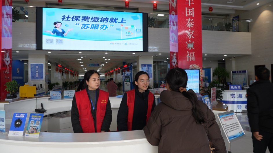 赣榆区政务服务大厅帮代办人员热情为群众提供咨询和指引服务。各个办事区域工作人员耐心解答群众疑问,认真办理每一项业务,通过优化办事流程、推行线上线下融合服务等措施,有效提高办事效率,减少群众等待时间。